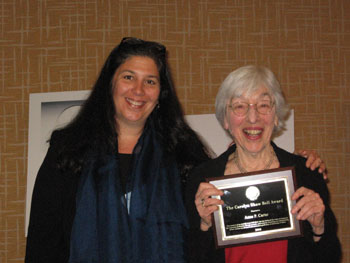 The Carolyn Shaw Bell Award was created in January 1998 as part of the 25th Anniversary celebration of the founding of CSWEP. Carolyn Shaw Bell, the Katharine Coman Chair Professor Emerita of Wellesley College, was the first Chair of CSWEP. (To read a short biography of Carolyn Shaw Bell, see our Winter 2005 Newsletter.) The Carolyn Shaw Bell Award (“Bell Award”) is given annually to an individual who has furthered the status of women in the economics profession, through example, achievements, increasing our understanding of how women can advance in the economics profession, or mentoring others.
