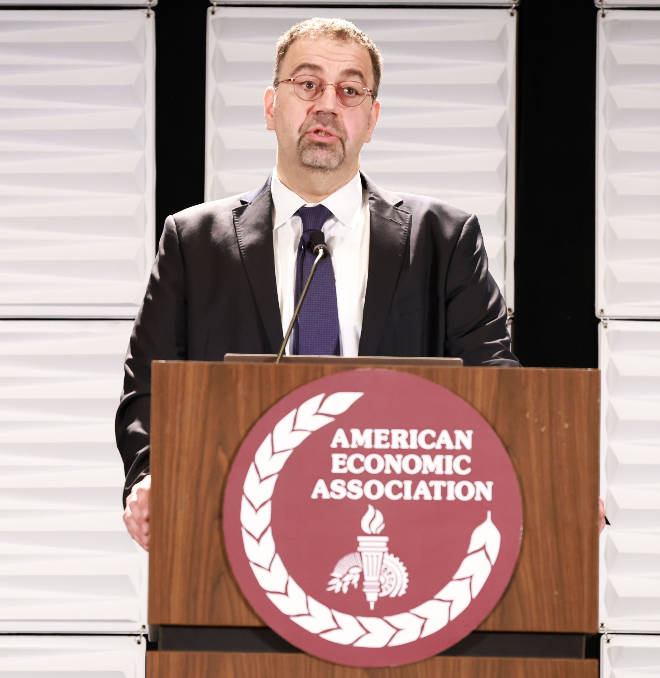 Sendhil Mullainathan delivering the 2025 AEA Distinguished Lecture, "Economics in the Age of Algorithms"