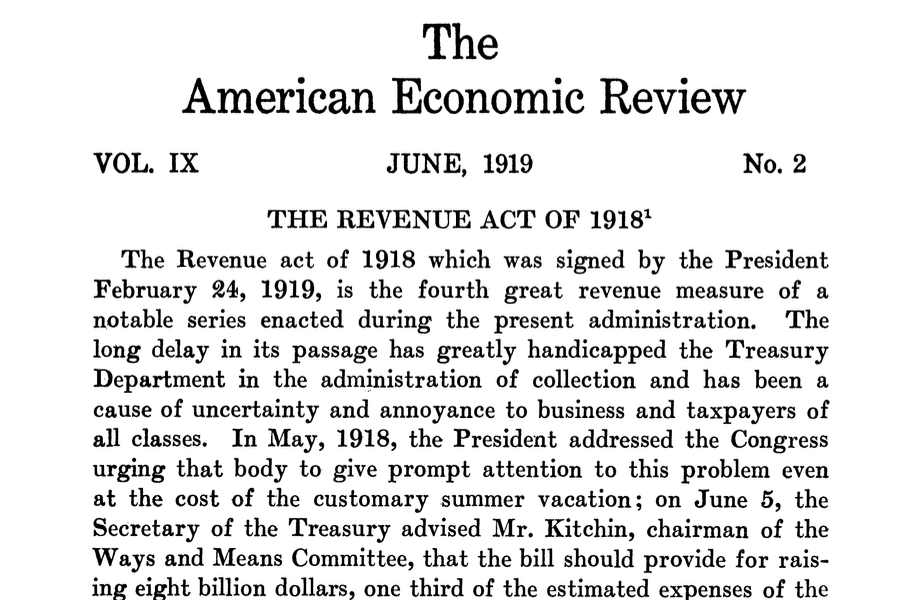 The Washington Post dug back 98 years into the archives of The American Economic Review for an article about how a national soda tax passed during World War 1 ultimately failed to raise much revenue for the government’s war chest. The newspaper cited a June 1919 paper by co-authors Roy G. and Gladys C. Blakey about the Revenue Act of 1918. In the paper, the Blakeys called the soda tax “annoying” for taxpayers and said it was “not high enough to discourage wasteful or unnecessary consumption, nor will it bring in much revenue to the government.” The Post notes that the policy was repealed shortly after the war even though the country still faced record debt.