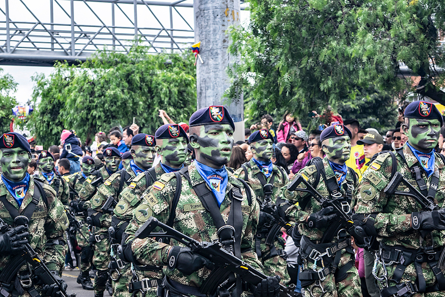 The Colombian military parades on the occasion of the anniversary of independence, held every July 20.
