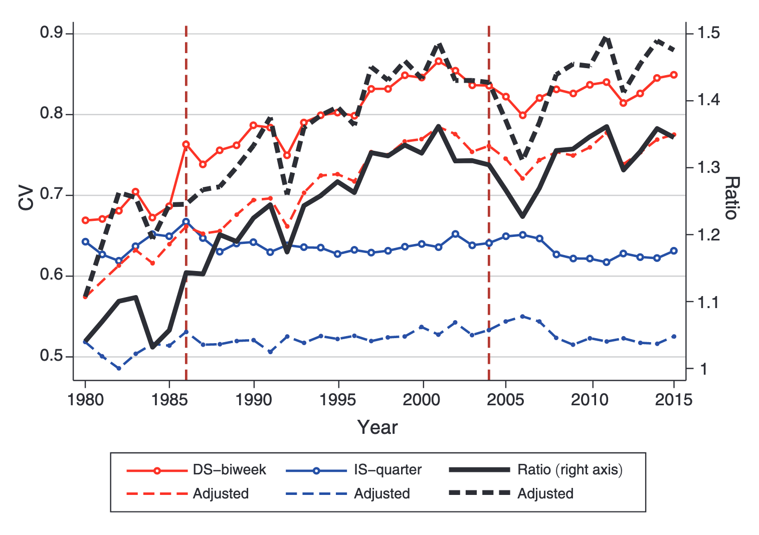 “What we find is that the increase in consumption inequality is more consistent with what we see in the Interview Survey,” Koustas said. “There is not as big a rise in consumption inequality tracking that rise in income inequality.”
